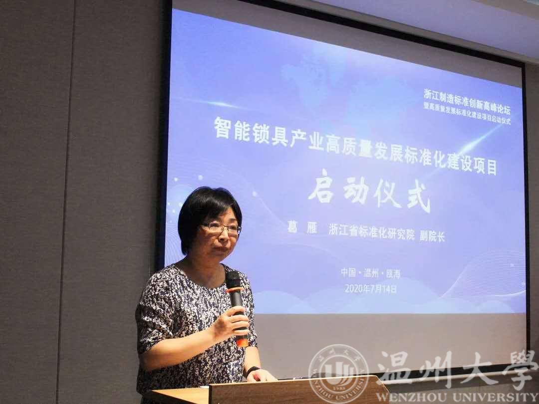 揭牌仪式后,葛雁宣布“智能锁具产业高质量发展标准化建设项目”正式启动,并从国家标准化战略、双方合作的背景和意义、省标院支持产业高质量发展、标准化建设等方面发表重要讲话。