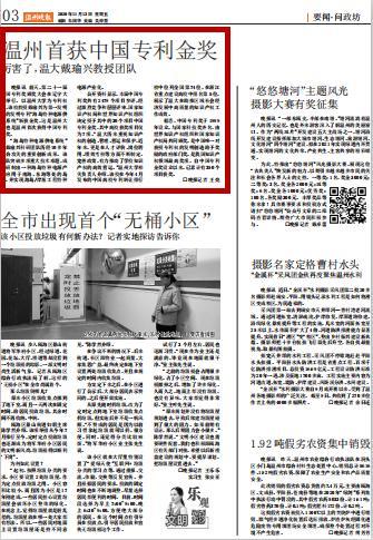 公开资料显示,本届中国专利奖共有 2479 个项目参评,经过激烈竞争和层层评审,国家知识产权局和世界知识产权组织决定授予其中的30个项目中国专利金奖,其中高校获奖项目仅为 7 项。“温大历来重视知识产权的创造、管理、营运和保护,近年来,更是在人才评价、岗位聘用、绩效考核等方面不断制定、完善政策,有力推动了学校知识产权的高效营运。”球盟会官网相关负责人介绍,该校在今年4月发布的中国高校专利转让排行榜中位列全国第 74 位,在浙江省重点建设高校中排名第5位,展示了温大在助推区域社会经济发展中高质量的知识产权工作成效。