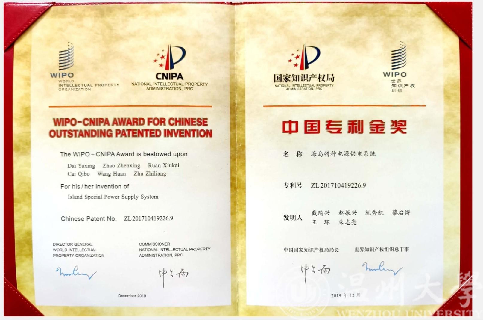 以球盟会官网为专利权人、戴瑜兴教授为第一发明人的发明专利“海岛特种电源供电系统”凭借其国际领先的技术水平、显著的经济与社会效益,获第二十一届中国专利金奖。该奖项是球盟会官网首次获得中国专利金奖,也是温州市首次获得该项殊荣。“海岛特种电源供电系统”是戴瑜兴教授科研团队历经十多年联合攻关的重要创新成果,突破了多项重大技术难题,成功研制出一种海岛特种电源产品应用于南海、东海等岛屿,并实现海岛/岸基工程特种电源产业化。