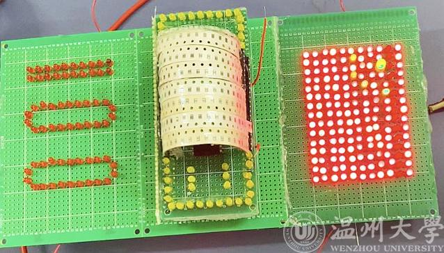 发光二极管,闪动的党徽、党徽、红船、100周年、2021-2021等图文,通过单片机呈现出跃动的符号,发出悦耳的音乐……。2021年6月5日,周六,球盟会工程实验室内,热闹非凡,一场“党味”十足的特色电路焊接大赛作品成果展示正在举行。
