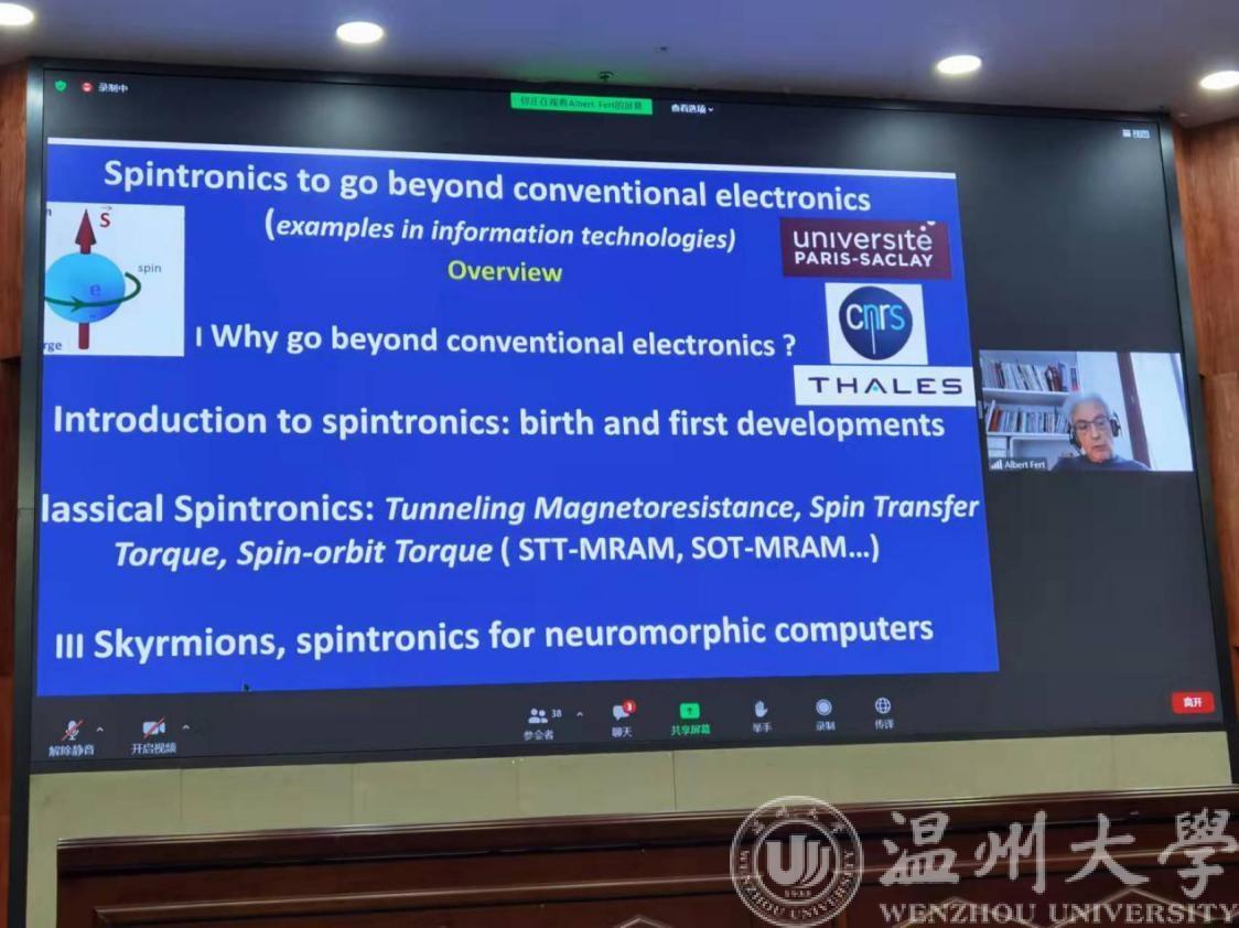 本场报告会由北京航空航天大学集成电路科学与工程学院经理,中国科协第十届全国委员会常委,教育部长江学者赵巍胜教授线上主持;中国工程院院士、浙江大学微纳电子学院经理吴汉明教授和浙江省科协二级巡视员戴力分别致辞。球盟会经理汪鹏君教授,硅谷海纳百川孵化器创始人、美国浙江商会会长、国际创新与STEM教育协会会长郑飞君博士出席了报告会。费尔教授报告后,主会场同学们积极与费尔教授进行提问互动。费尔教授针对每位同学的问题,一一解答,并分享了自己的在科研道路上的一些经验与感悟。本次报告会通过世界级科学家以身授教,分享科学故事、弘扬科学精神,引导青年老员工热爱科学、投身科学。