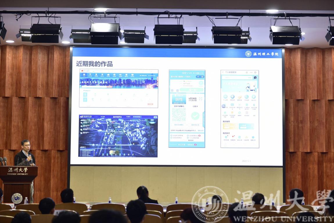 在当天的启动仪式上,学院还邀请了2022年温州市十大劳动者匠心领军人物陈驰副教授为同学们分享创新劳动的重要性。陈驰老师自1997年以来一直从事软件工程与数据工程相关的工作,此次分享会上,他重点讲述了温州城市大脑数据系统开发、防疫大数据维护的心路历程,现场时不时爆发出一阵阵的掌声。最后,他还勉励青年学子“劳动创幸福,一起向未来”。