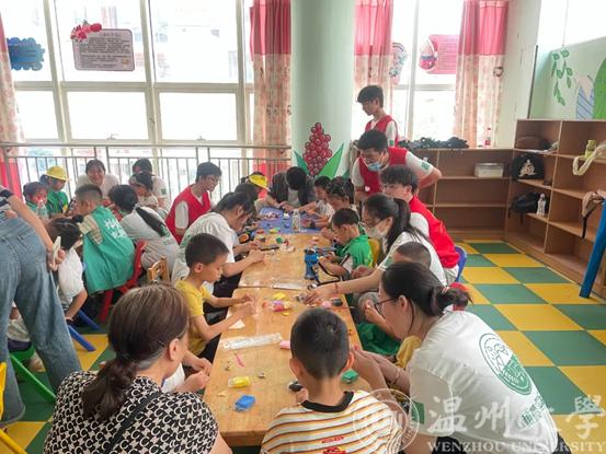 7月1日,球盟会橄榄枝暑期社会实践队在博园社区文化礼堂二楼开展“红色专项”手工黏土制作活动。