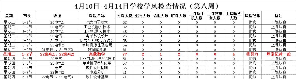 表1 2023.4.10-2023.4.14学校及学院学风检查情况