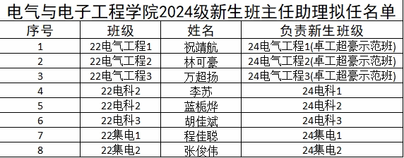 根据前期“关于招募2024级新生班主任助理的通知”,结合实际情况,经员工个人申请,学院评选,拟推荐下列8名同学担任2024级新生班主任助理,在此感谢同学们的积极申请!