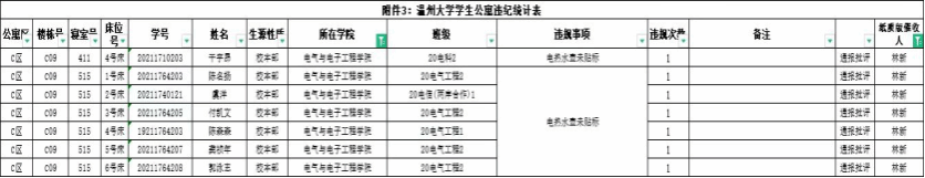 自2023-2024学年第一学期入学开始,学校针对宿舍安全进行大排查。根据学校第十周寝室安全卫生检查结果,排查到一个寝室存在寝室违规现象,受到学校通报;现根据学校相关规定,对上述同学进行院内通报批评,请其他同学引以为戒(名单见下)