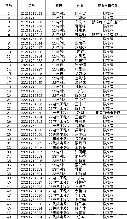 根据《关于做好2024年浙江省普通高校本专科生和研究生国家奖助学金评审工作的通知》、《球盟会官网员工资助管理办法》、《球盟会国家奖学金、国家励志奖学金、省政府奖学金和国家助学金实施细则》等文件精神,经员工申请,学工办材料审核,学院评审委员会评选,共评选出 应利波 等48名同学拟获2023-2024学年省政府奖学金,现将拟推名单予以公示。