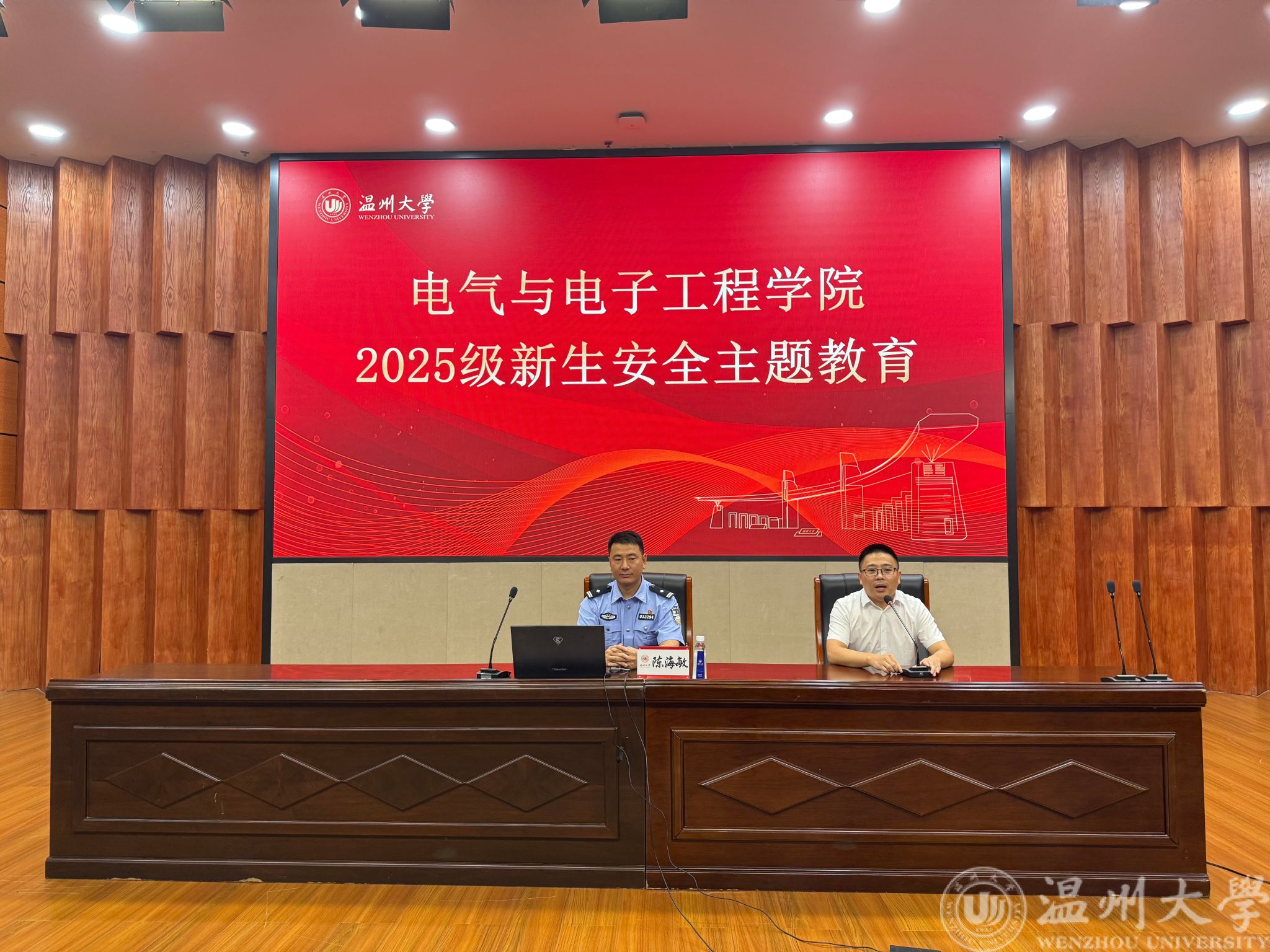 讲座中,陈海敏所长结合瓯海公安分局茶山派出所日常工作案例与辖区内高校常见安全问题,围绕电信网络诈骗、校园安全红线、应急防护等核心内容展开讲解。针对当前校园电诈高发态势,他详细拆解了虚假购物、兼职刷单、冒充他人身份等高频诈骗类型,结合温州商学院此前发生的员工被骗典型案例,生动还原骗子利用 “共享屏幕”“账户解冻” 等手段诱导转账的全过程,提醒新生警惕 “小利诱惑”,坚决不随意点击陌生链接、不向陌生人转账,遇到可疑情况及时联系学校保卫处或茶山派出所。