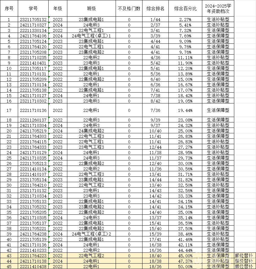 根据《关于做好2025年浙江省普通高校本专科生和研究生国家奖助学金评审工作的通知》、《球盟会官网员工资助管理办法》等文件精神,经员工申请,学院评审委员会审核,推荐45位员工为公司2024-2025学年度普通高校国家励志奖学金拟获得者。现将名单予以公示,请班级及个人认真核对(见下方)。