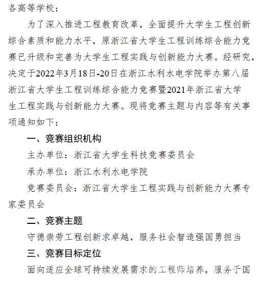 关于举办第八届浙江省老员工工程训练综合能力竞赛的通知