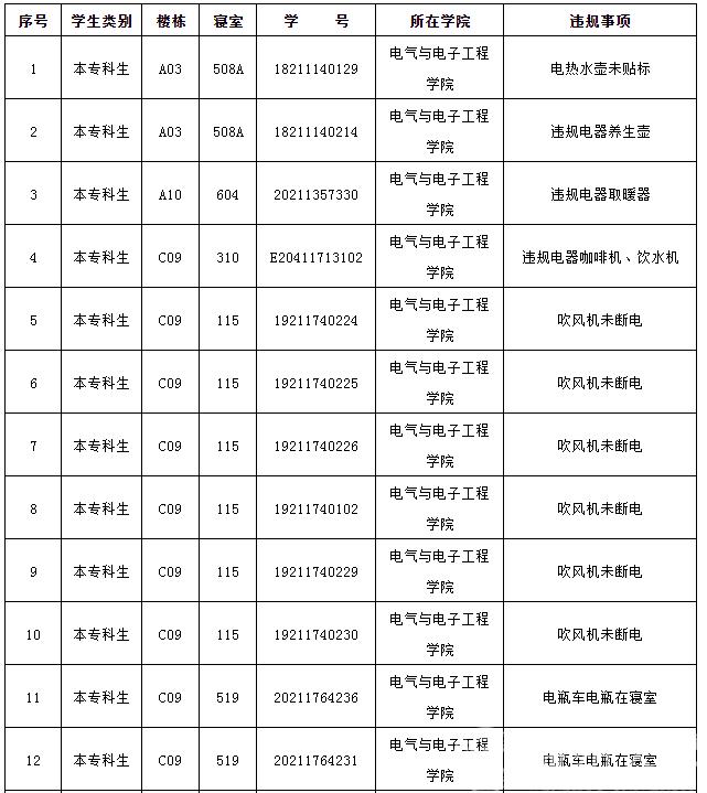 根据学校员工公寓安全“四级联查”工作机制要求,学工部、研工部、后勤管理处、保卫处联合于2月23日对员工公寓区安全情况进行检查,在检查中公司共存在12起安全违规现象,现予以通报批评,请大家引以为鉴。